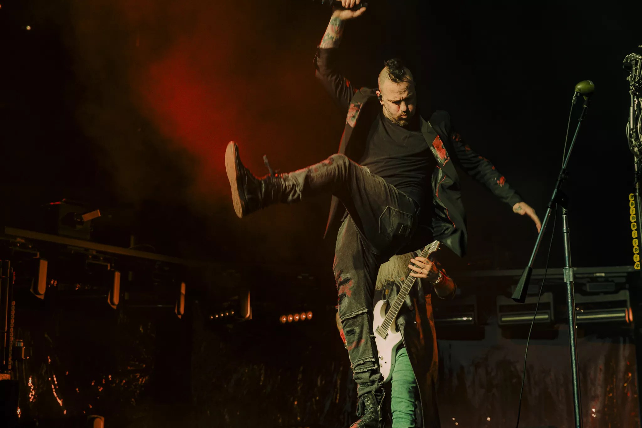 Lead vocalist, David Draiman, opening Disturb’s performance by being wheeled out in a straight jacket and Hannibal Lecter-like costume.