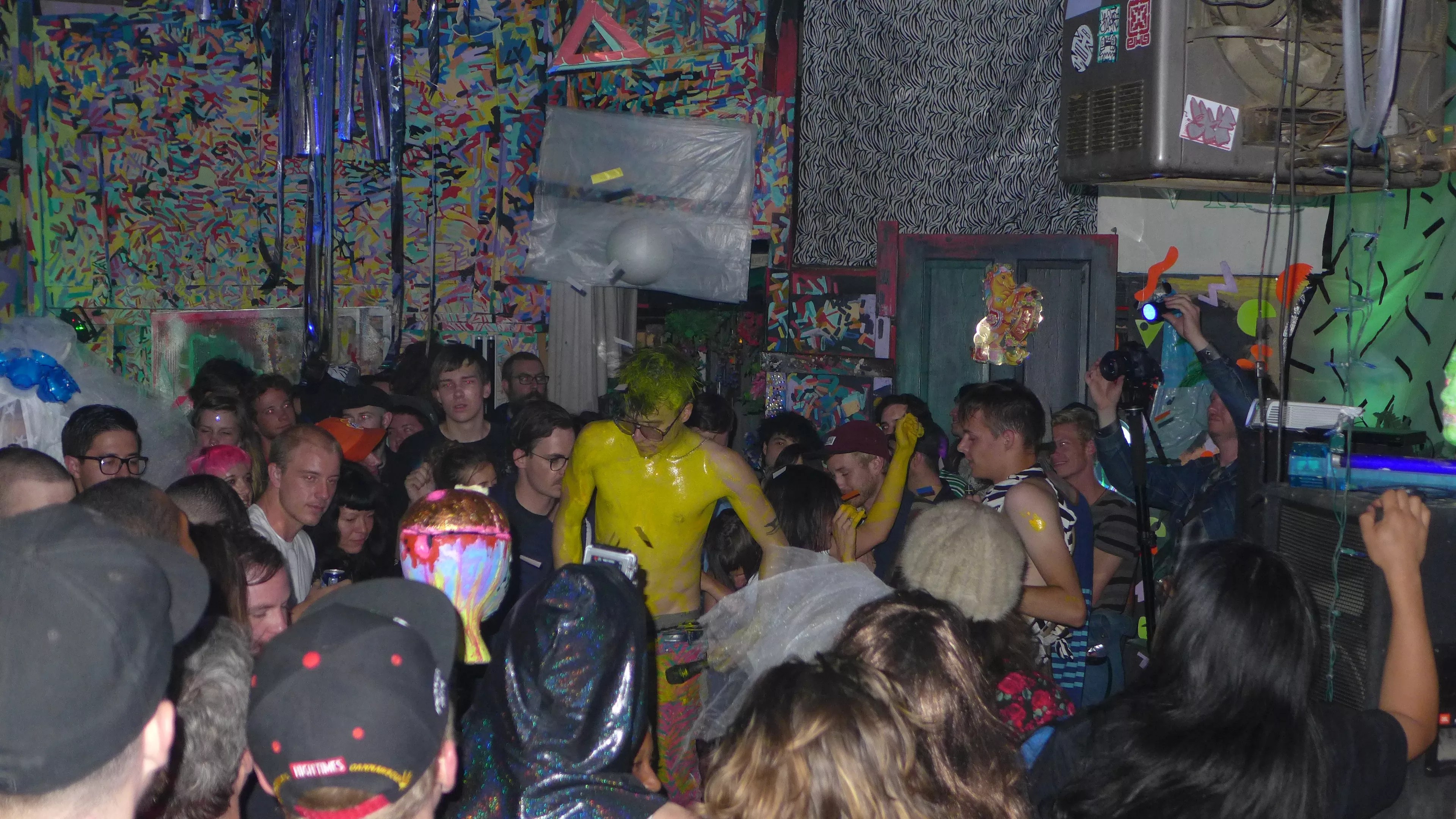 Egedy says that he and Ward were friends from that point on. Ward started coming to shows at Rhinoceropolis as a teen, and it wasn’t long before he was playing shows there as well. Years later, Ward would become one of the many artists who inhabited the warehouse space as a tenant, contributing to its constant aesthetic and energetic changes, one era of which is caught on camera in the “Color Spectrum (Tokyo Drift)” video.