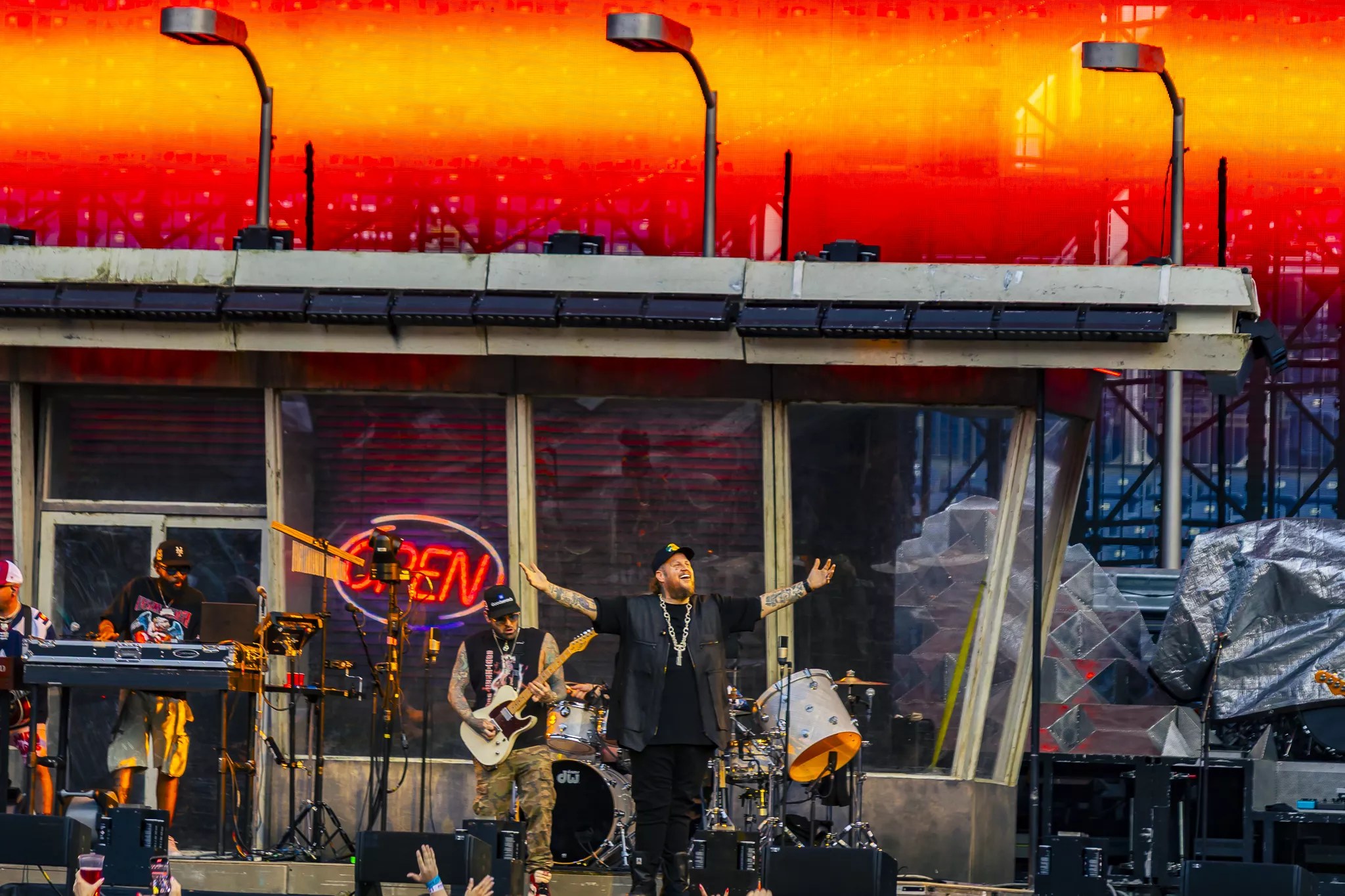 Jelly Roll on stage at Empower Field at Mile High opening for Post Malone.
