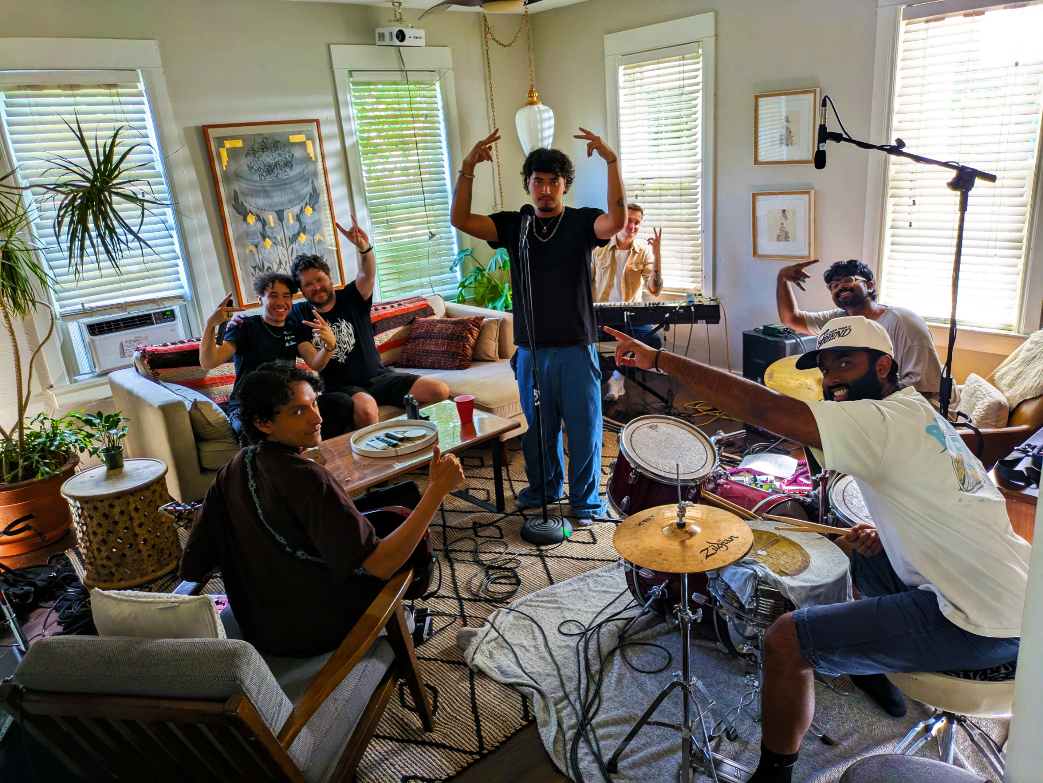 Burroughs is on keys, ego n friends is on guitar, Israel Barkat is on bass, and Sam Bhara is on drums. Santana occasionally jumps on instruments himself, playing the piano and the ukulele; the latter of which, during a song filmed in a dark bathroom lit only by a street lamp through the window.