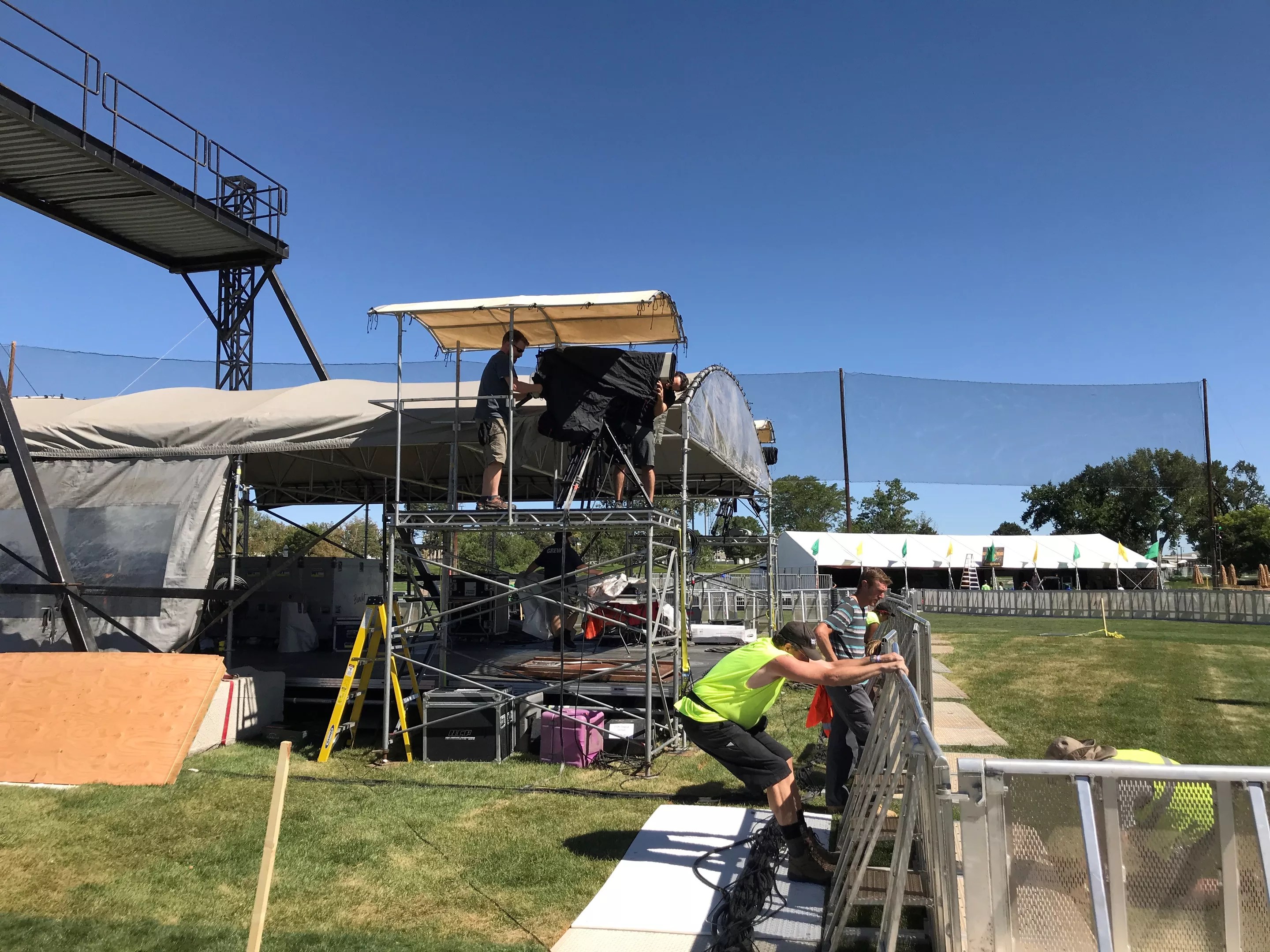 Workers have been sweating for the past few days under the glare of the Colorado sun, erecting stages, climbing scaffolding, rigging lights, testing cameras and, as one Grandoozy rep put it, building an entire city in less than a week – a city that will be taken down just as fast.
