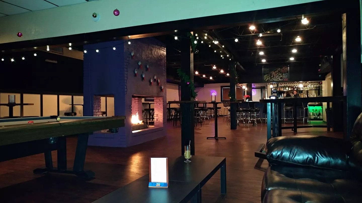 “What everyone has told me that’s come in here: It’s very warm and very inviting,” she says. “Kind of like being in your own living room. We have this huge fireplace in the middle of the room. We have a back section, which we call our VIP area, and have two sectional couches, and in between them is the pool table.”