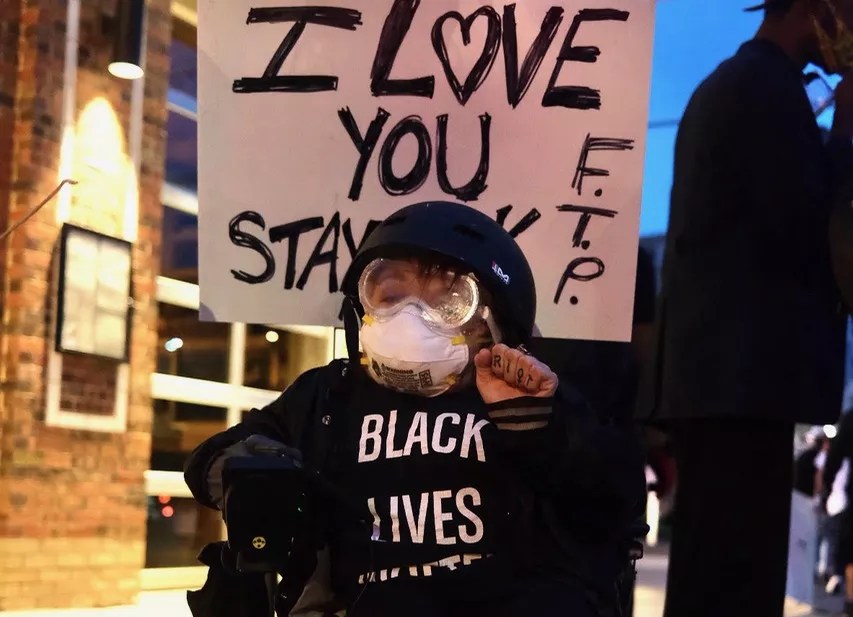 Former mayoral candidate and furious Wheelchair Sports Camp MC Kalyn Heffernan has not been sleeping well…and that’s unusual. But lately, things have been keeping her up at night: the pandemic, the police murders, the protests, the law enforcement attacks on demonstrators, the escalation of white supremacy, and the worries that mass mobilizations around the country will lead to an uptick in the pandemic, causing more black people – already hit hardest by COVID-19 – to suffer and die.