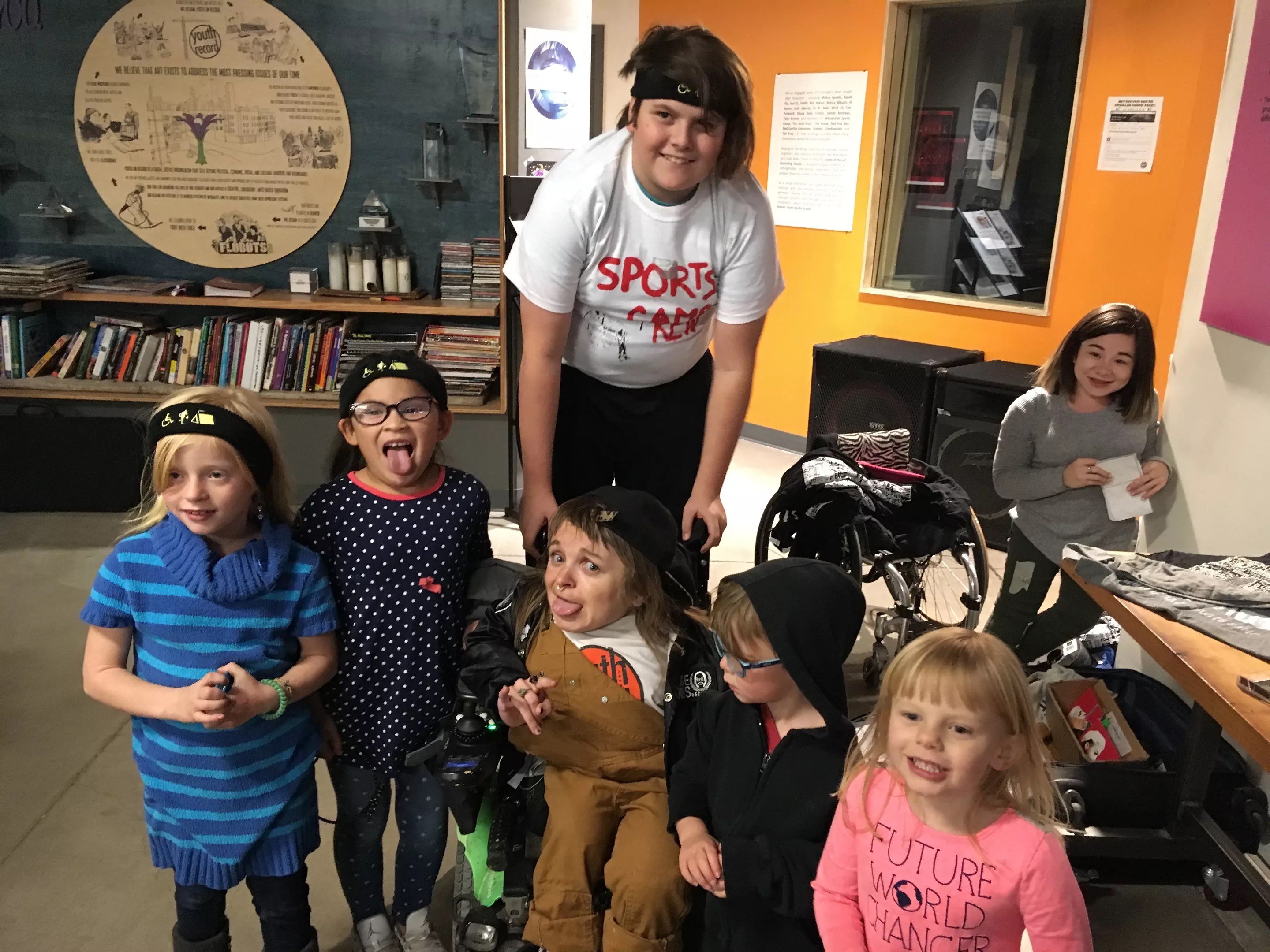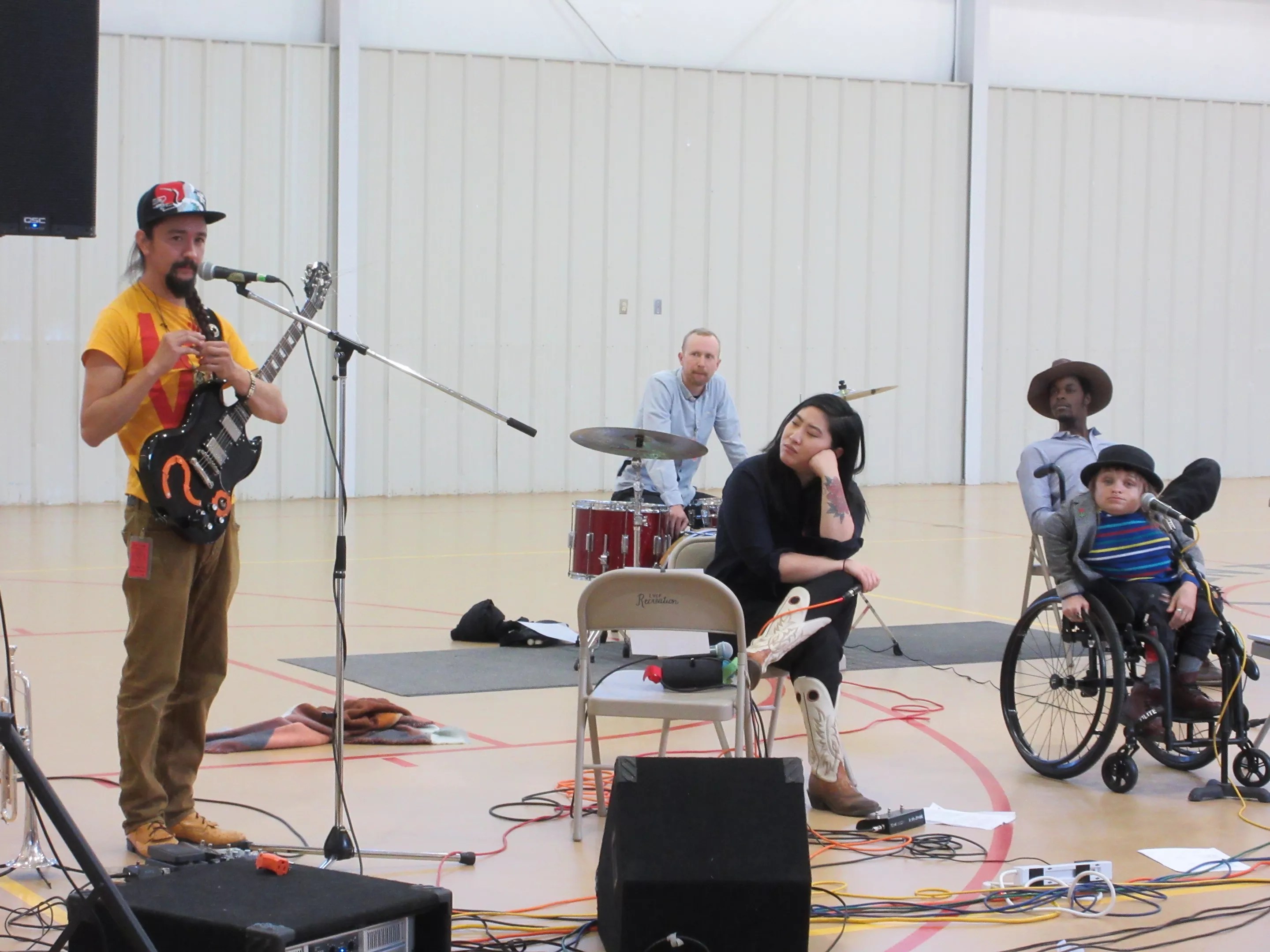 She recruited Michelle Rocqet, the beatboxing singer in The Milk Blossoms, and Joshua Abeyta of Chicano funk band Los Mocochetes, both Heffernan’s colleagues at Youth on Record, to perform and share their stories alongside Wheelchair Sports Camp on the tour. Trinidad wasn’t able to make the dates, so Watkins, Ziemba and Heffernan played the tour as a trio. Kate Warner of Mirror Fears loaned her PA system and came along to mix sound.