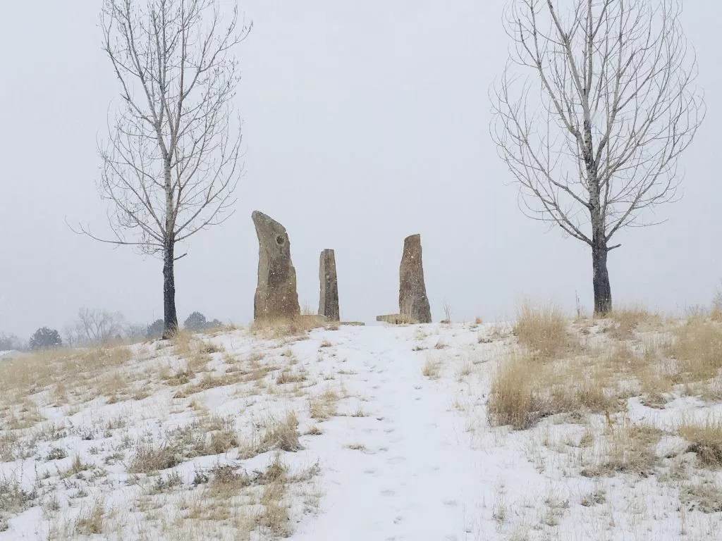 And as I slug along through the snow, I see a vision. Yup, Stonehenge. Right here in River City. This prehistoric monument was built in approximately 2500 B.C. – probably before even REI came into existence. Even though I’m thinking this is not the original, it is still pretty darn fantastic.