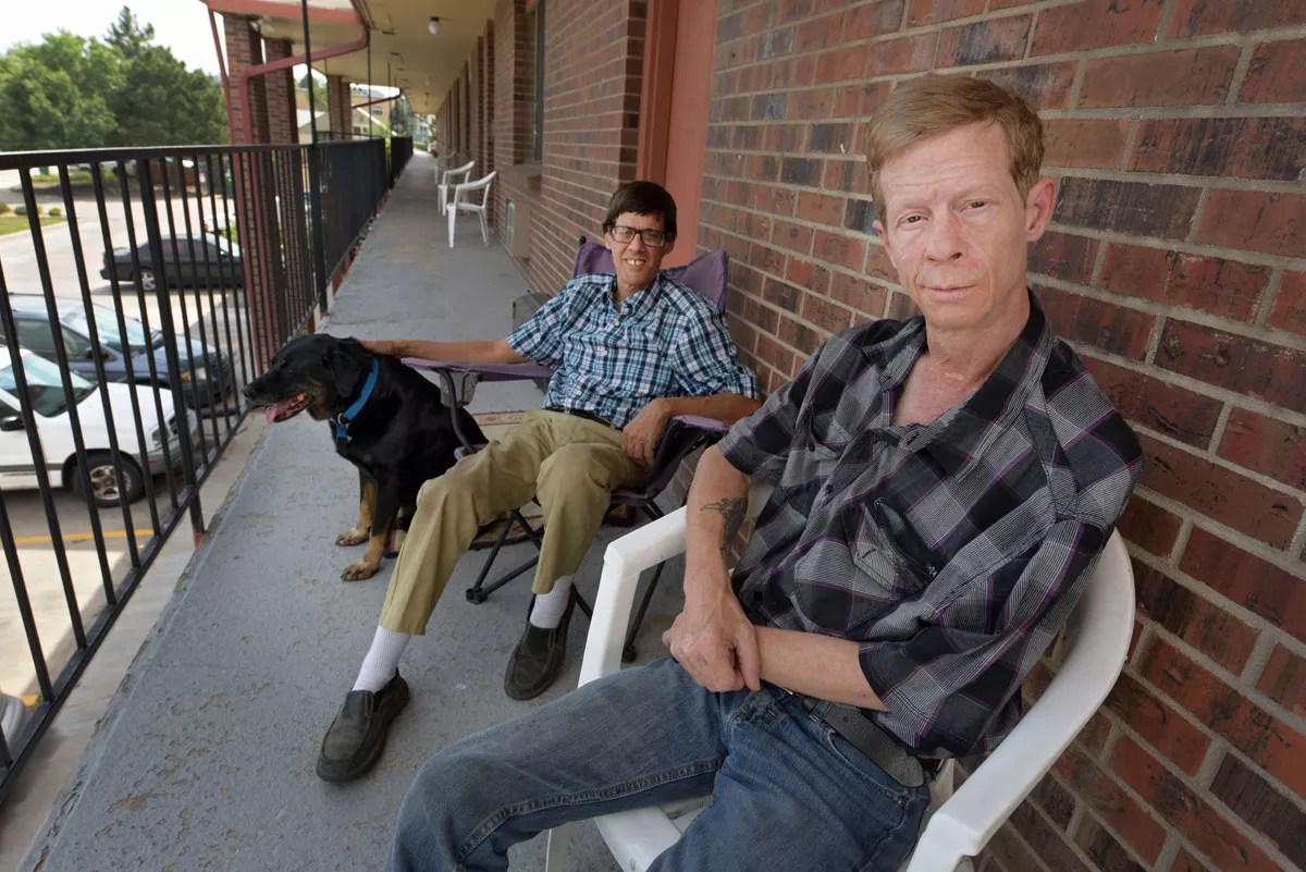 Mitchel Sparer (left) provided Alan Fantin and his dog, Scooter, a place to sleep after Fantin was banned from his house.