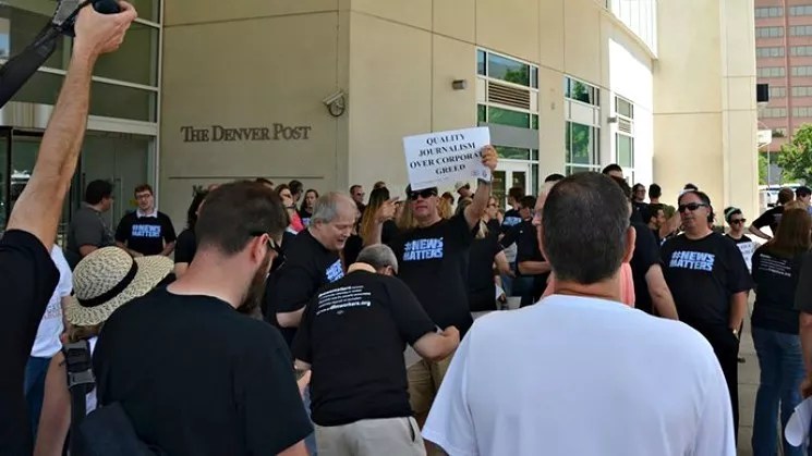 An early protest of Alden Global Capital outside the Denver Post‘s former downtown headquarters.