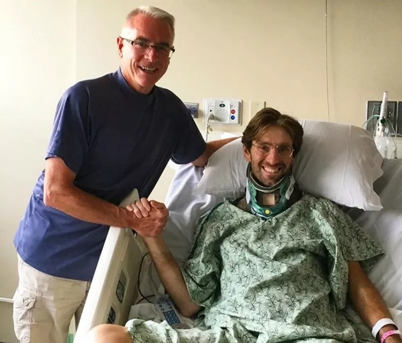Shortly thereafter, Bernstein learned that he had been visited by a guardian angel – a man named Tim (he doesn’t want his full name published) who had gone through a very similar experience. This past May, Bernstein reveals, “he was hit by a car when he was riding his bike. It left him with significant injuries that required an extended hospital stay.”