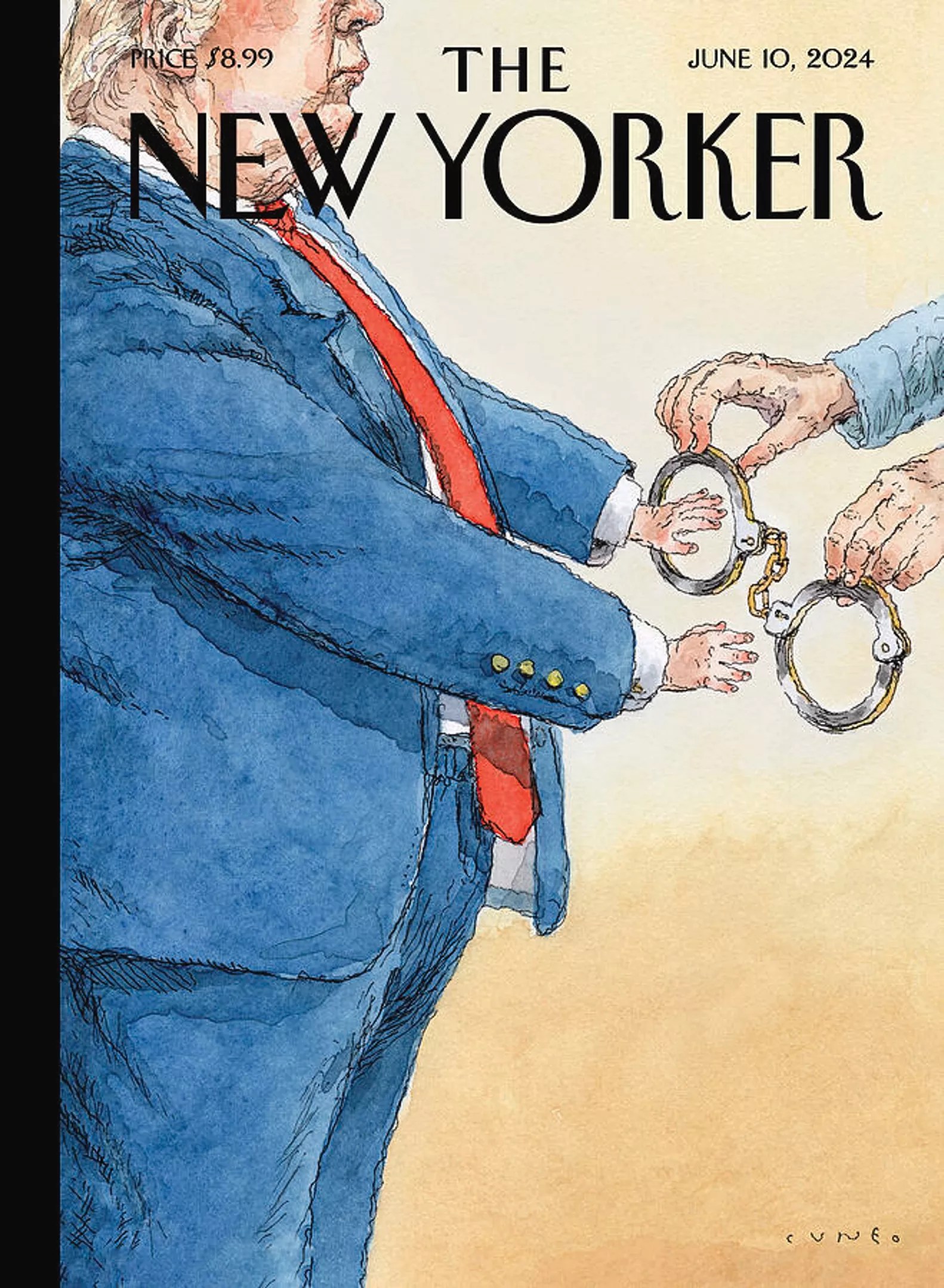Today, he’s known internationally for his exquisite, insightful work…including a certain New Yorker cover, “A Man of Conviction,” showing Donald Trump getting cuffed after his conviction in New York last May.