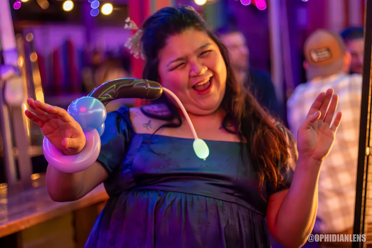“Our patrons love when ‘the balloon guy’ is here,” says the bar’s general manager, drag queen Kelela C. Staxxx. “He is always very engaging and kind to our patrons. He knows how to play toward the crowd here at X Bar and make fun and exciting balloon pieces for our patrons. Everyone is always happy to see him.”