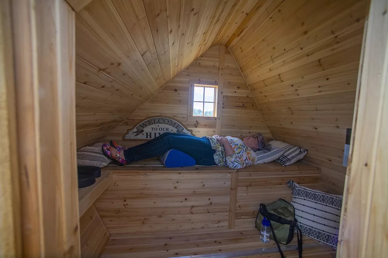 People often report feeling tingly, Carolyn notes. By design, the huts aren’t equipped with many cushions or other padding so that people can connect more closely with the bees.