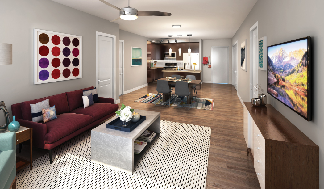 Interiors of the pet-friendly apartment homes will be equipped with modern features such as energy-efficient stainless steel appliances, quartz counters, tile backsplashes and luxury vinyl tile. Included in the apartment homes, the community will feature one guest suite.