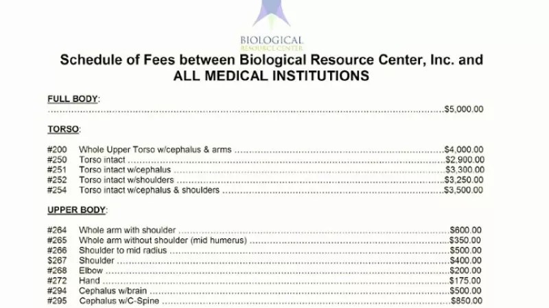 As part of their research into the suit, Burg and his team uncovered a price list from Arizona’s Biological Resource Center, Inc., whose owner, Steve Gore, pleaded guilty to taking part in a criminal enterprise back in 2015. According to Burg, BRC disputed the suggestion that it illegally sold human body parts for profit, maintaining that the dollar amounts on the list were merely service fees – but the prices still offer an idea of how valuable human body parts can be. For instance, a “cephalus,” or head, with a brain was marked at $500, a cephalus with a spine was set at $850, and an intact torso with a cephalus and shoulder brought $3,500.