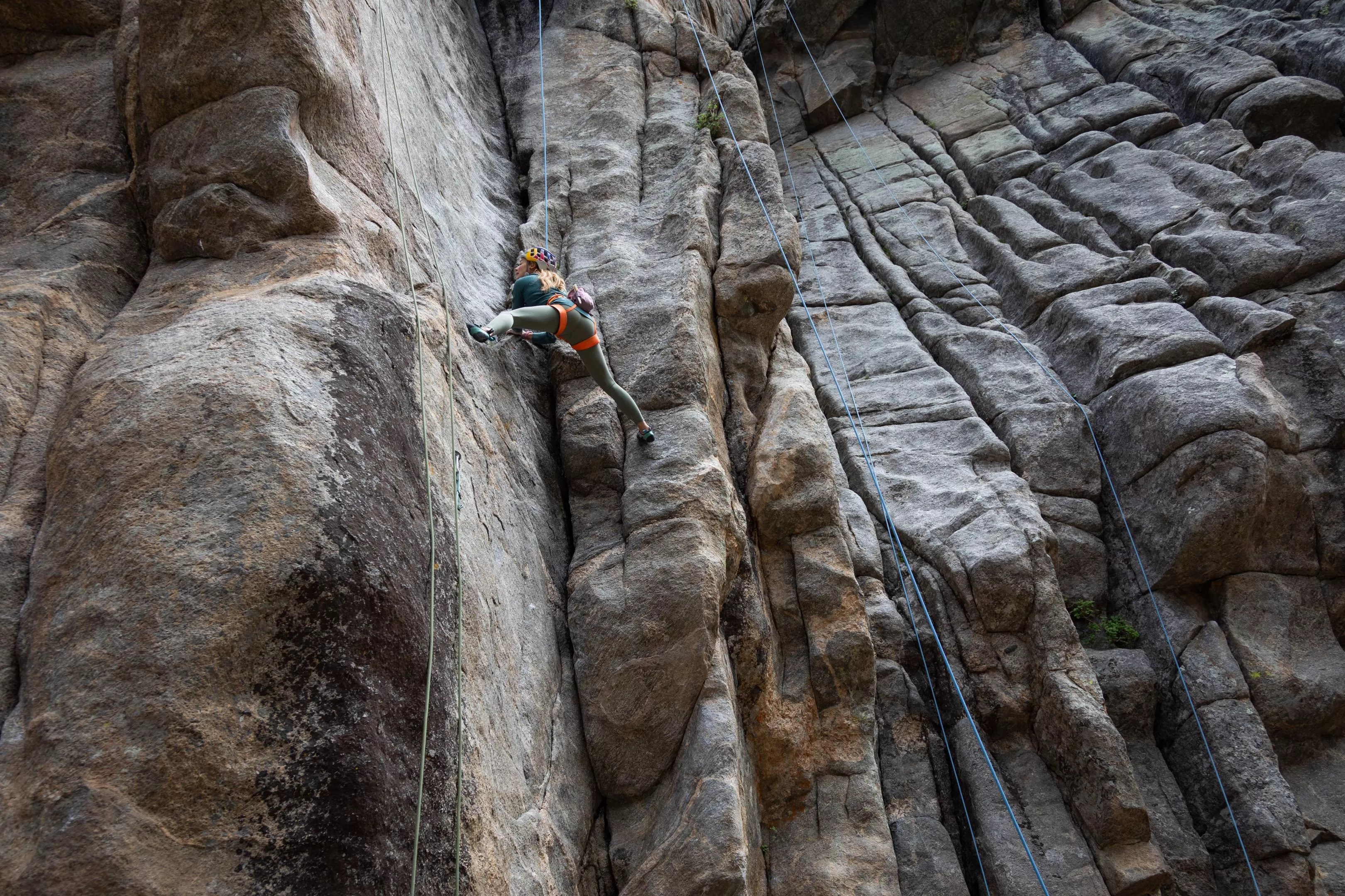 “The Flatirons in Boulder are really incredible, and it’s really unique rock to climb on. It’s a sandstone conglomerate,” she says. “I’ve traveled to over fifty different countries around the world to climb, and I think Boulder has really good climbing.”