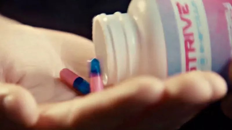 Cut to a flashback of Shanann revealing that she’s pregnant prior to a scene of Watts on the job; he worked for Anadarko Petroleum. In a conversation with a co-worker, he talks about Strive and insists that it makes him feel great. These comments are followed by the first appearance of a montage used multiple times over the course of the tale; Watts empties pills from a Strive bottle into his hand, gulps them down and slaps a patch on his upper arm. Shortly thereafter, Shanann is shown recording a cell phone video about how much she loves selling this merch and announces that she’ll soon be headed to North Carolina to “get my Strive on.”