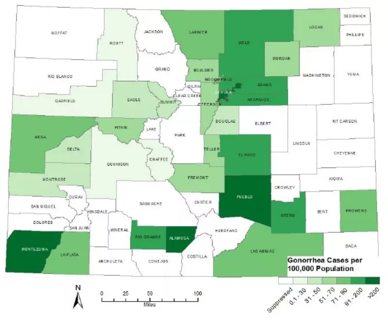 A recent report from the Colorado Department of Public Health & Environment shows a steady and disturbing increase in the number of sexually transmitted infections in the state, including a jump in gonorrhea cases of just under 200 percent over a five-year period.