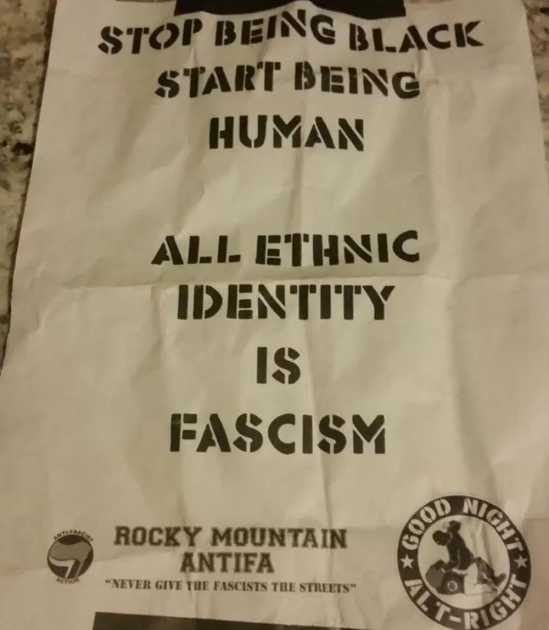 A member of the Colorado Springs Anti-Fascists says alt-right individuals or organizations are impersonating her group and others like it in order to falsely portray the antifa movement in general as ultra-violent and morally bankrupt. She adds that the fields of battle include the Internet, where a bogus Colorado Springs Antifa Facebook page remains online at this writing, and the streets, via methods such as fake fliers, bogus letters and dubious graffiti intended to rile up and confuse both the mainstream media and the citizenry as a whole.