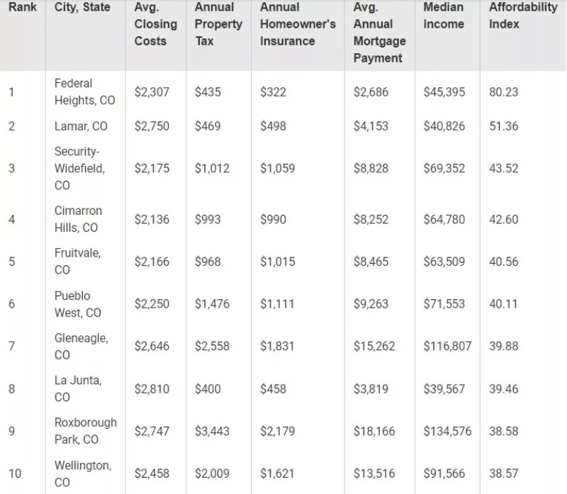 By this measure, Federal Heights was the runaway winner in Colorado, hitting 80.23 on the index. The city in second place – Lamar, a town of nearly 8,000 in the southeastern part of the state – ranked nearly thirty points lower.