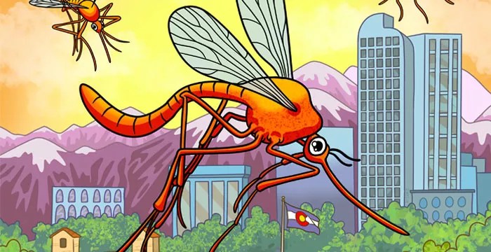 Turns out the insect carried West Nile virus, a malady capable of causing serious brain infections. When the first Colorado case of West Nile was identified in 2002, concern was high, for obvious reasons; more than sixty people died from it the next year. But the numbers tumbled after that, resulting in annual case counts usually well under 100 and fatalities in the single digits – and victims often had pre-existing conditions. These declines, coupled with the rise of far more lethal viruses such as COVID-19, caused West Nile to seem more like a nuisance than a serious threat to the populace.