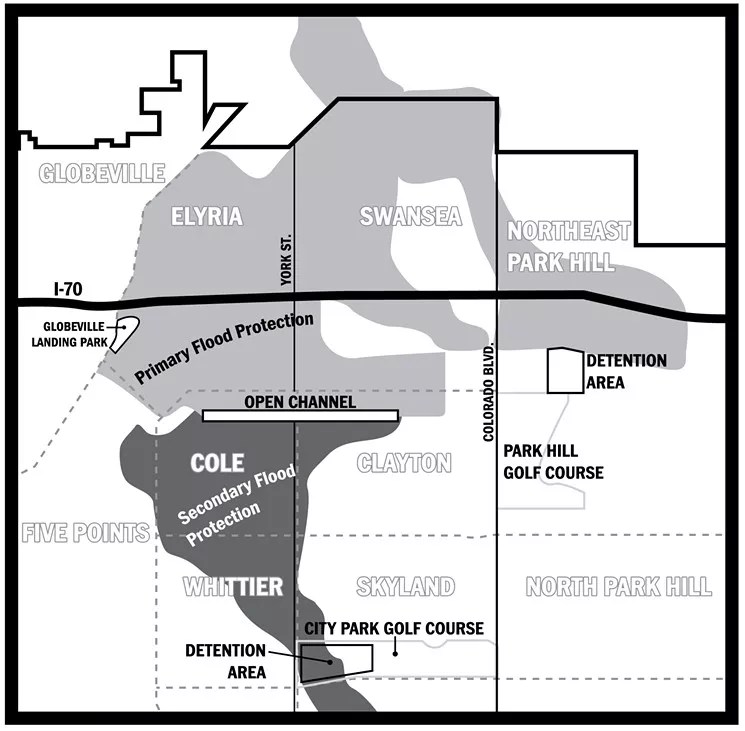“If the city is claiming that the flooding of City Park Golf Course has nothing to do with the Central 70 project, that is a direct contradiction of what council was told when the city sought approval for the fee hike,” Espinoza says. “This project misappropriates the use of the public good to focus on a floodplain that directly eases the development of the I-70 ditch at the expense of a more comprehensive citywide solution.”