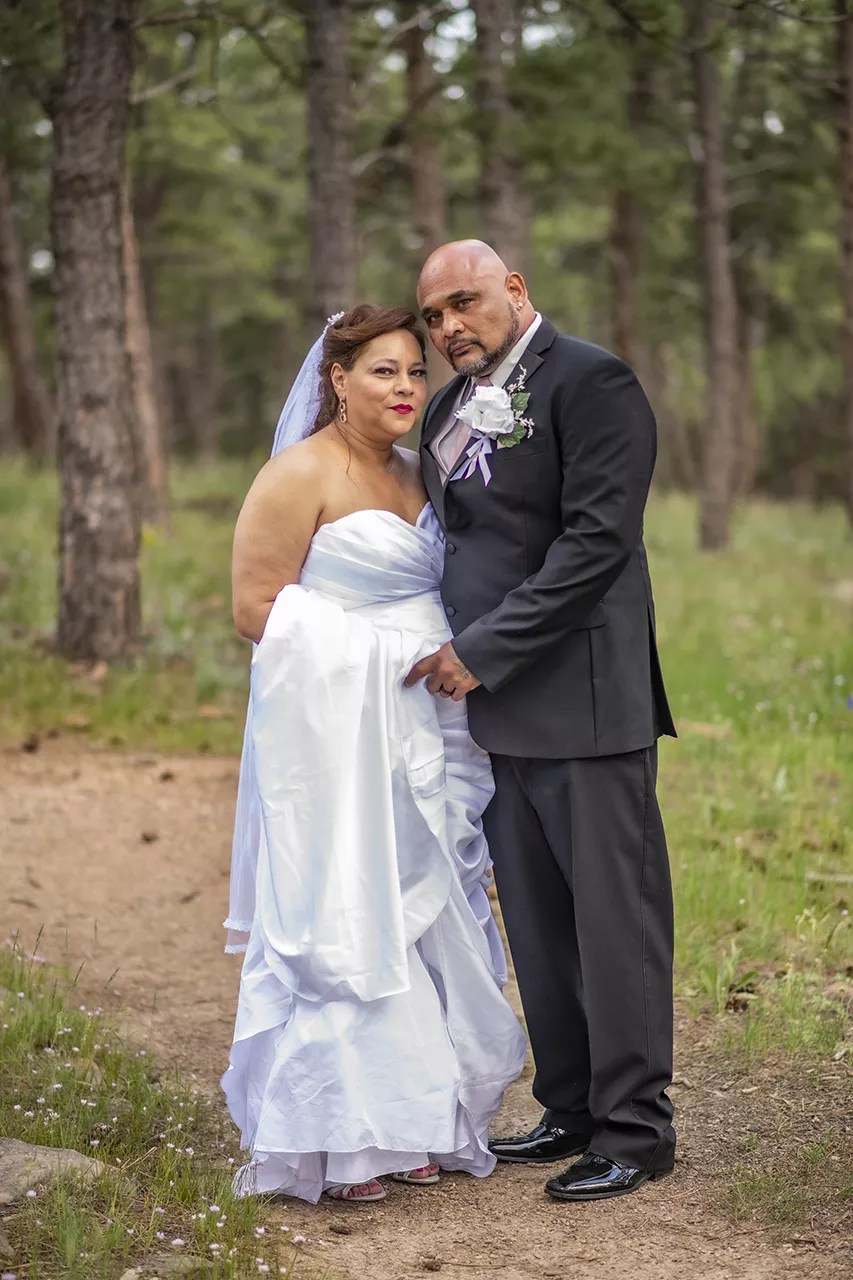 But as with much of their lives, both together and apart, the path to the wedding of Franco and Leticia was not smooth. The place where Franco had ordered tuxedos, an Al’s Formal Wear location, went out of business, but not before sending the wedding party’s tuxedos – all in the wrong sizes. Five days before the ceremony, the couple realized they’d forgotten to get the marriage license; Maes helped out with that. Franco decided that Leticia needed a different wedding gown, which led to the couple going last-minute dress shopping at Altar Bridal the day before the wedding. The original photographer canceled, and Maes brought in Evan Semón, a Westword freelancer, to shoot the ceremony. Then, an hour before the wedding, the DJ backed out, claiming he had double-booked; Maes brought a speaker as a substitute. She’d already made candles for the ceremony, each one representing a different loved one the couple had lost.