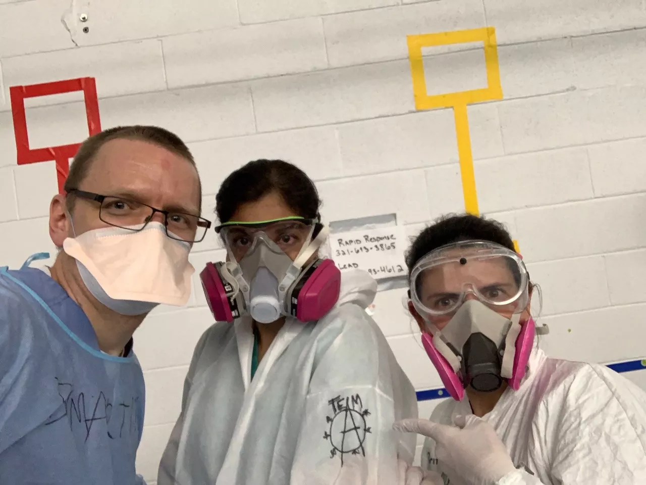 I want you to wear one of those N95 masks with another mask over it, with a face shield, plus the gown, and don’t eat or drink anything for twelve hours straight to not break your PPE.