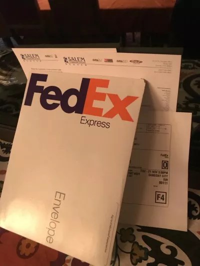 A photo of the FedEx package Craig Silverman says he received from KNUS yesterday.