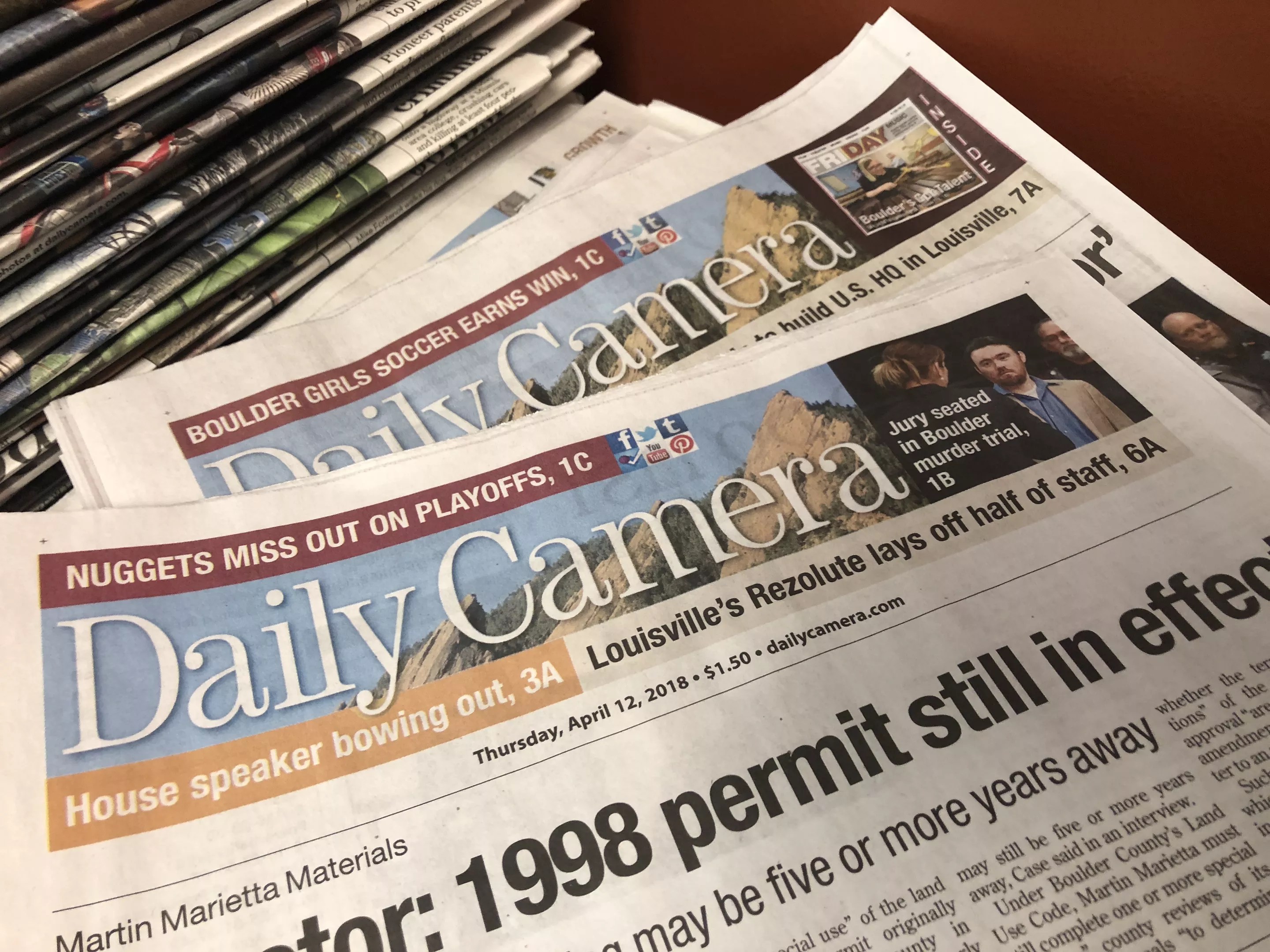 A photo of Boulder Daily Cameras that accompanied Dave Krieger’s self-publication of his anti-Alden Global Capital editorial.