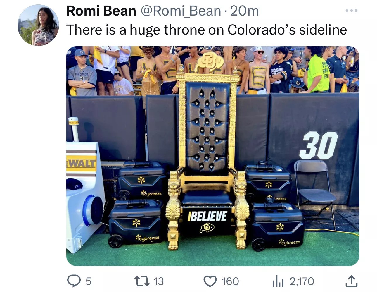 But Folsom was ready for high-profile fans; CBS Colorado sportscaster Romi Bean shared a photo of the throne ready on the sidelines.