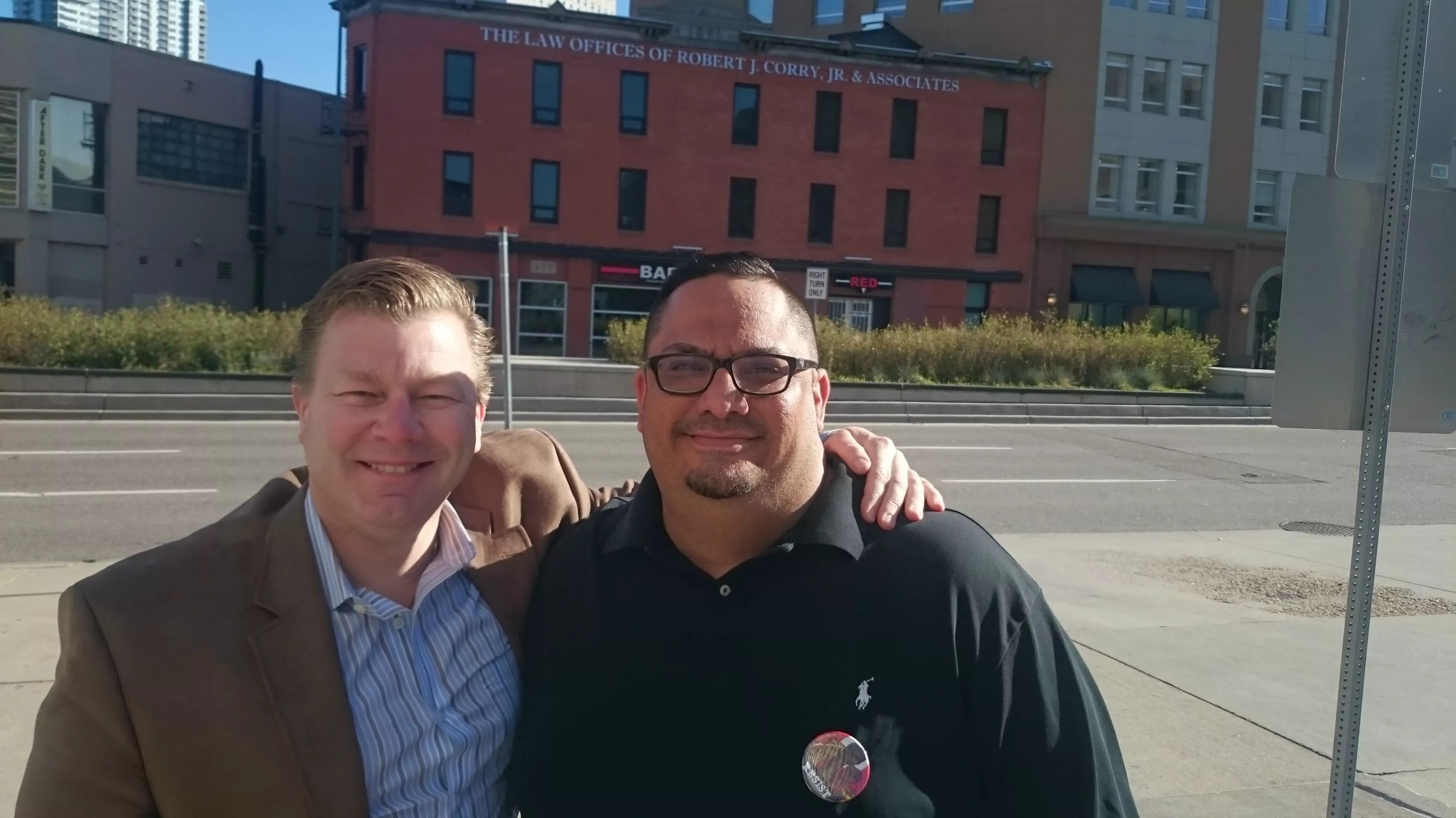 Rob Corry and Denver 420 Rally permit-holder Miguel Lopez.