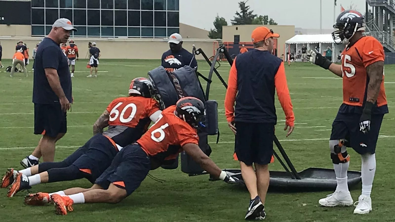 Meanwhile, on the other side of the field, faux-scrimmages pitted different offensive and defensive units against each other, with quarterbacks Case Keenum, Paxton Lynch and Chad Kelly taking turns at the helm.
