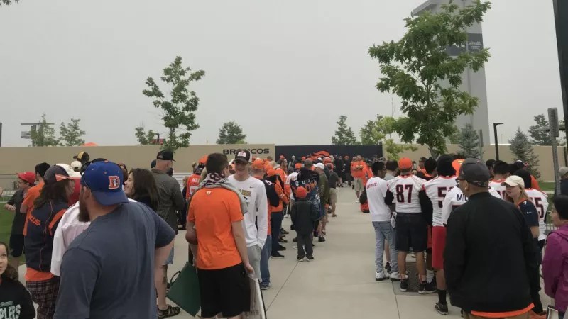 With that in mind, Lora and I arrived absurdly early – just past 6:30 a.m., around half an hour before the parking lot opened. It was the first of our rookie mistakes. Instead of finding a parade of cars lined up to gain entry, we encountered a Broncos Parkway that was nearly deserted, except for multiple police vehicles, bubble lights flashing as officers readied to direct the traffic to come.