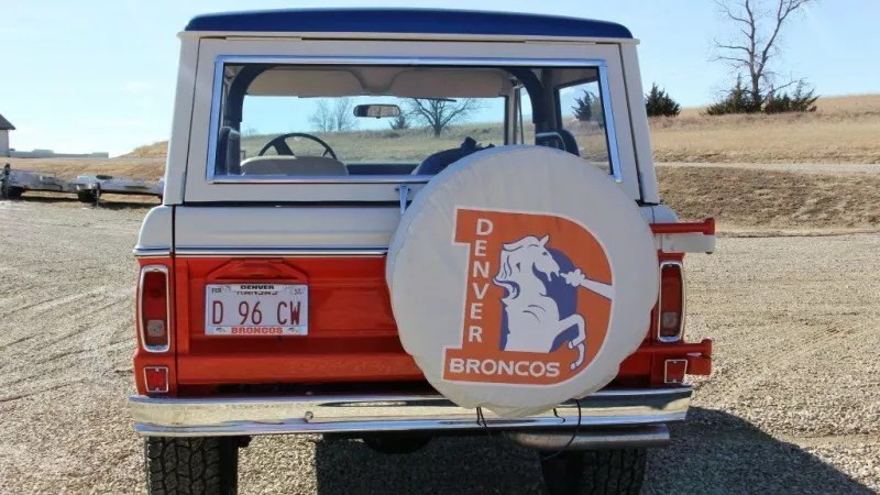 A cherry version of a 1975 Ford Bronco marketed as the “Denver Broncos Edition” is currently available at the online auto site Bring a Trailer. The auction ends in fewer than four days, and at this writing, six bidders have pushed the price to $44,999.