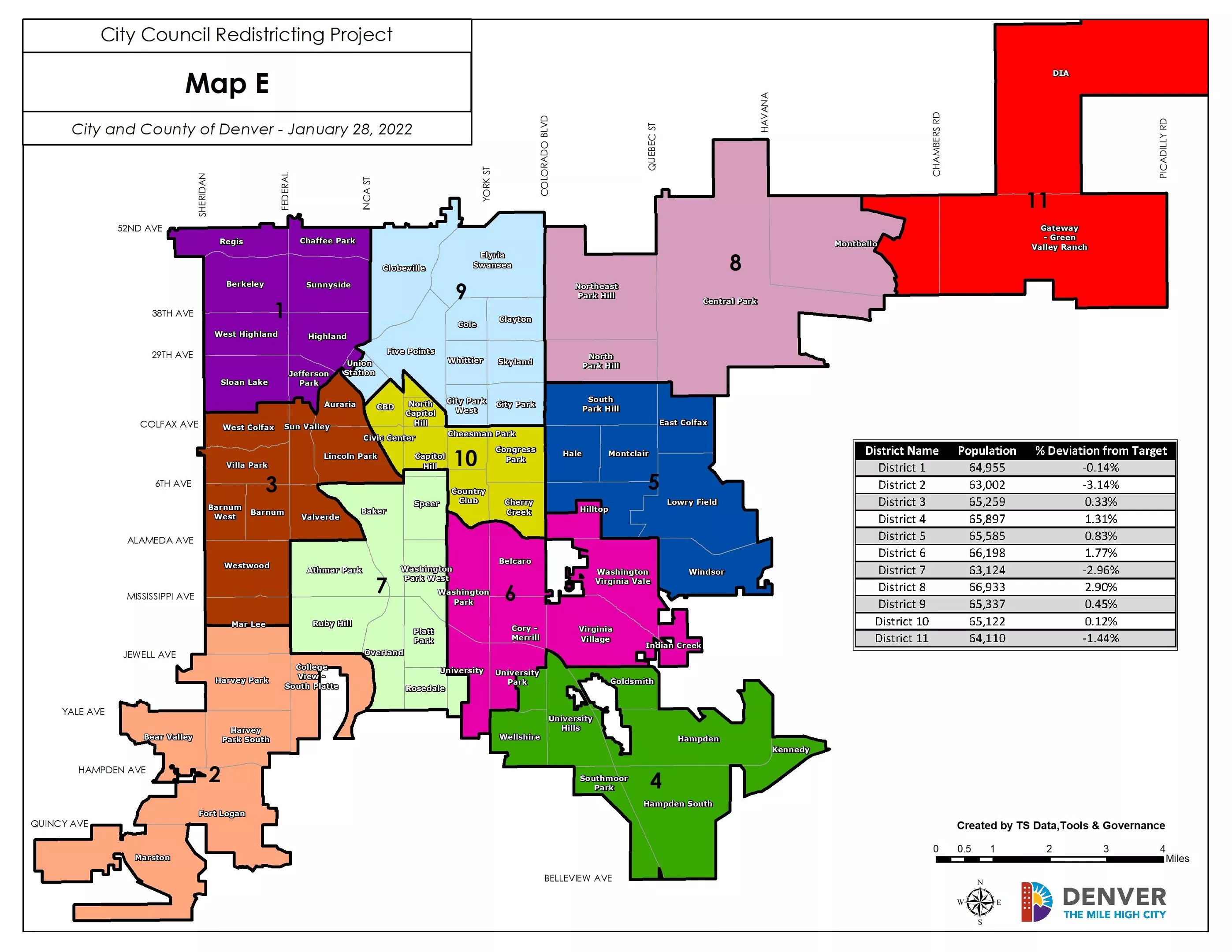 The redistricting process is a bit rushed this time, both because of a delay in the Census results and a ballot measure approved in November that moved the Denver City Council election from May to April in order to comply with state and federal voting rules.