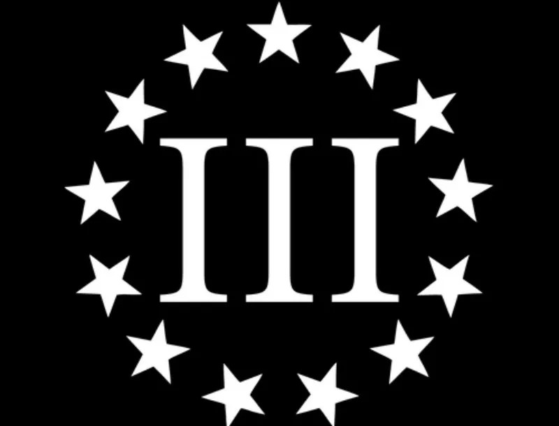 “The thirteen stars surrounding the Roman number ‘3’ represent the thirteen original colonies,” he writes. “The Roman numeral ‘3’ represents the 3 percent of the colonists who stood against the King of England in the Revolutionary War and fought for our freedoms.”