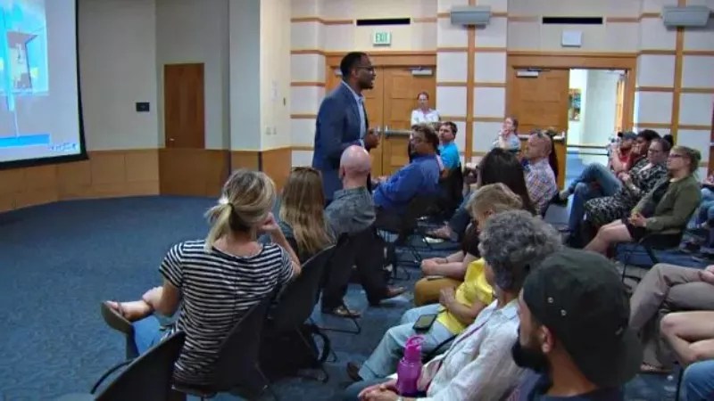 Denver councilman Albus Brooks at the Denver Public Library event where he shared his revelation about addiction to opioids.