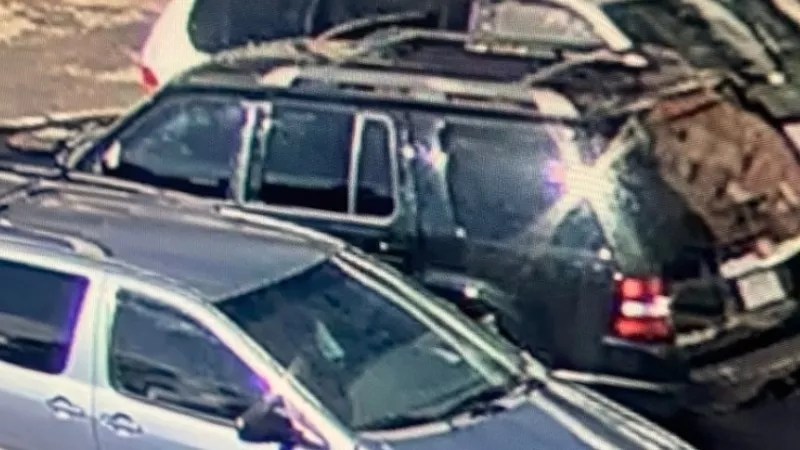 The dark vehicle in this photo shared by the Denver Police Department is believed to have been taken by the suspects in the shooting.