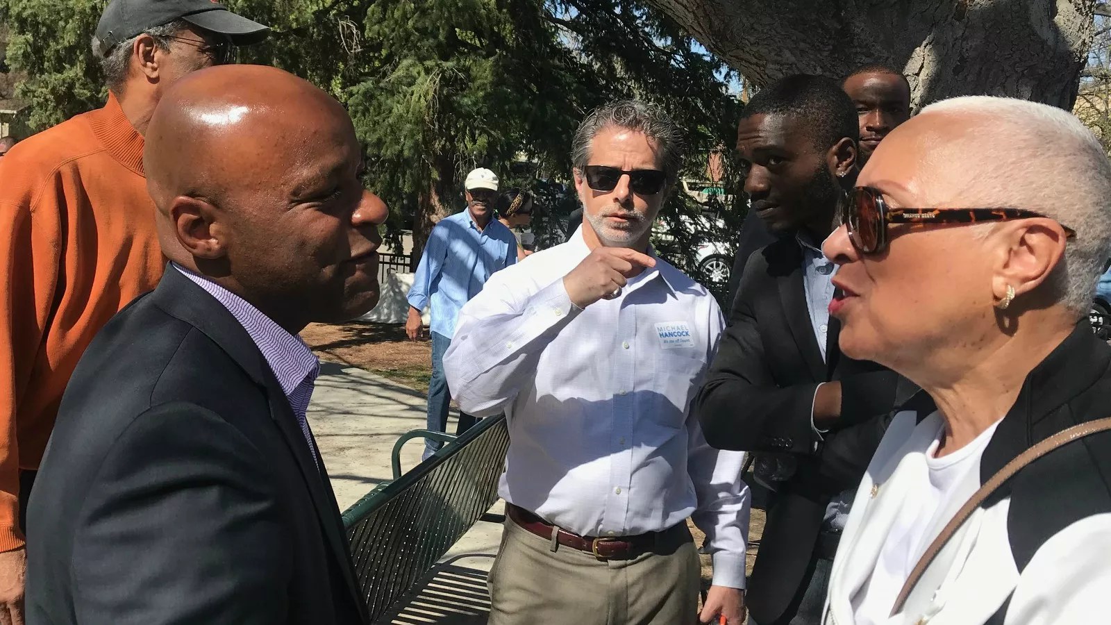 Mayor Michael Hancock greeting a supporter at a campaign event late last month.