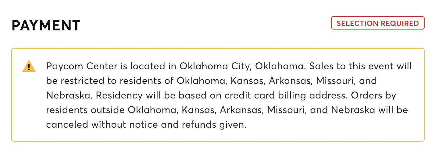 And if Nuggets fans really want to go to a game in Oklahoma it appears buying a ticket through a non-Ticketmaster site on the resale market is possible. In our tests, neither StubHub or SeatGeak mentioned any restrictions on billing zip codes even after we put in payment information with a Denver zip code.