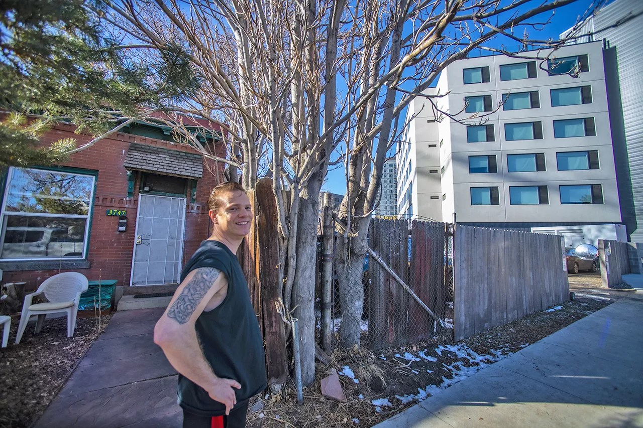 No original homes are left a block away on Blake; there are just two duplexes and a single two-story in the 3700 block of Walnut and a few more old residences on Downing before Five Points melts into a gentrifying sea of pop-ups and scrape-offs and new builds, mostly larger complexes or million-dollar townhomes. To the east of Marion, the Cole neighborhood, most of which is still residentially zoned, is just starting to evolve, turning over from the street corners inward, with a few holdout homes hanging on in the middle of the block. But most of the area dubbed RiNo nearly two decades ago has changed beyond recognition.