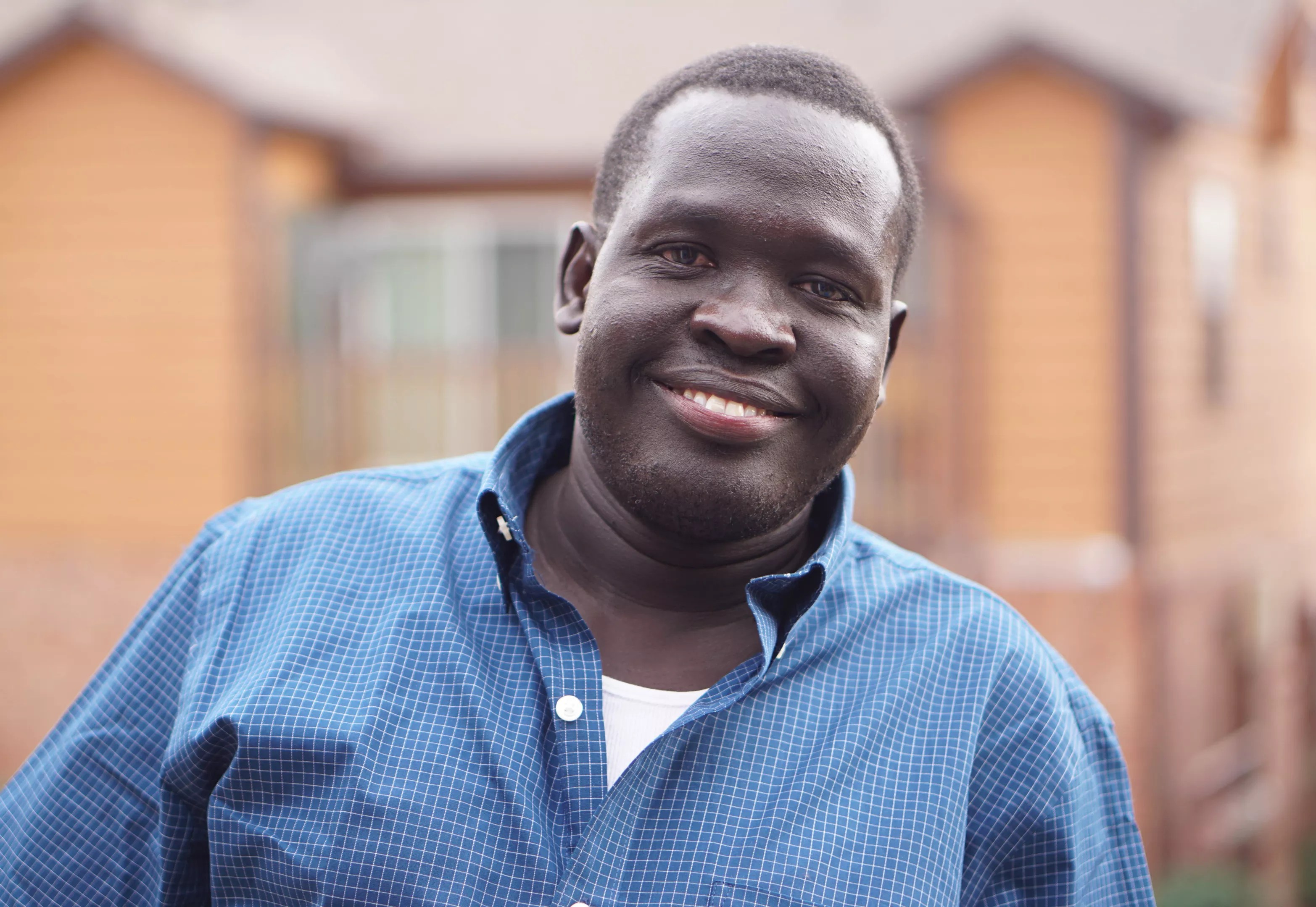 During his first year away from home, Ayol didn’t go to school or have a home or even a blanket to sleep with. Many of his peers starved to death. Things slowly improved when the United Nations Refugee Agency dropped off building materials for huts to serve as shelters and schools. “I went from angry, to trying to figure out how to take care of myself, to wondering if the UN would be there for us the next day,” he says. When the political climate in Ethiopia deteriorated, Ayol was forced to move again and start over. The same cycle ensued: starting with nothing, building the huts and makeshift schools, and moving again. Ayol finally received a break when he was selected to attend a government boarding school in Kenya. Food was still scarce – he picked mangos and bananas off trees for meals – but his life improved. At nineteen, after years of moving around Africa without his parents, without steady meals and without much hope, he was allowed to enter the United States as a refugee. “I couldn’t even comprehend how good it was,” he says.