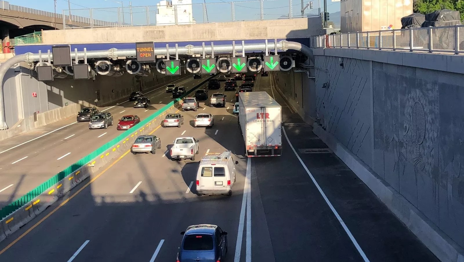 Early on May 24, a portion of Interstate 70 that had just undergone what was dubbed the “Mile High Shift” reopened six lanes (three eastbound, three westbound) to travelers after a full weekend closure. Shortly thereafter, traffic slowed to a crawl on either side of a 900-foot section of roadway between Columbine and Clayton streets in which drivers pass under a newly installed cover – an area that doesn’t officially qualify as a tunnel, even though signage uses that very word.