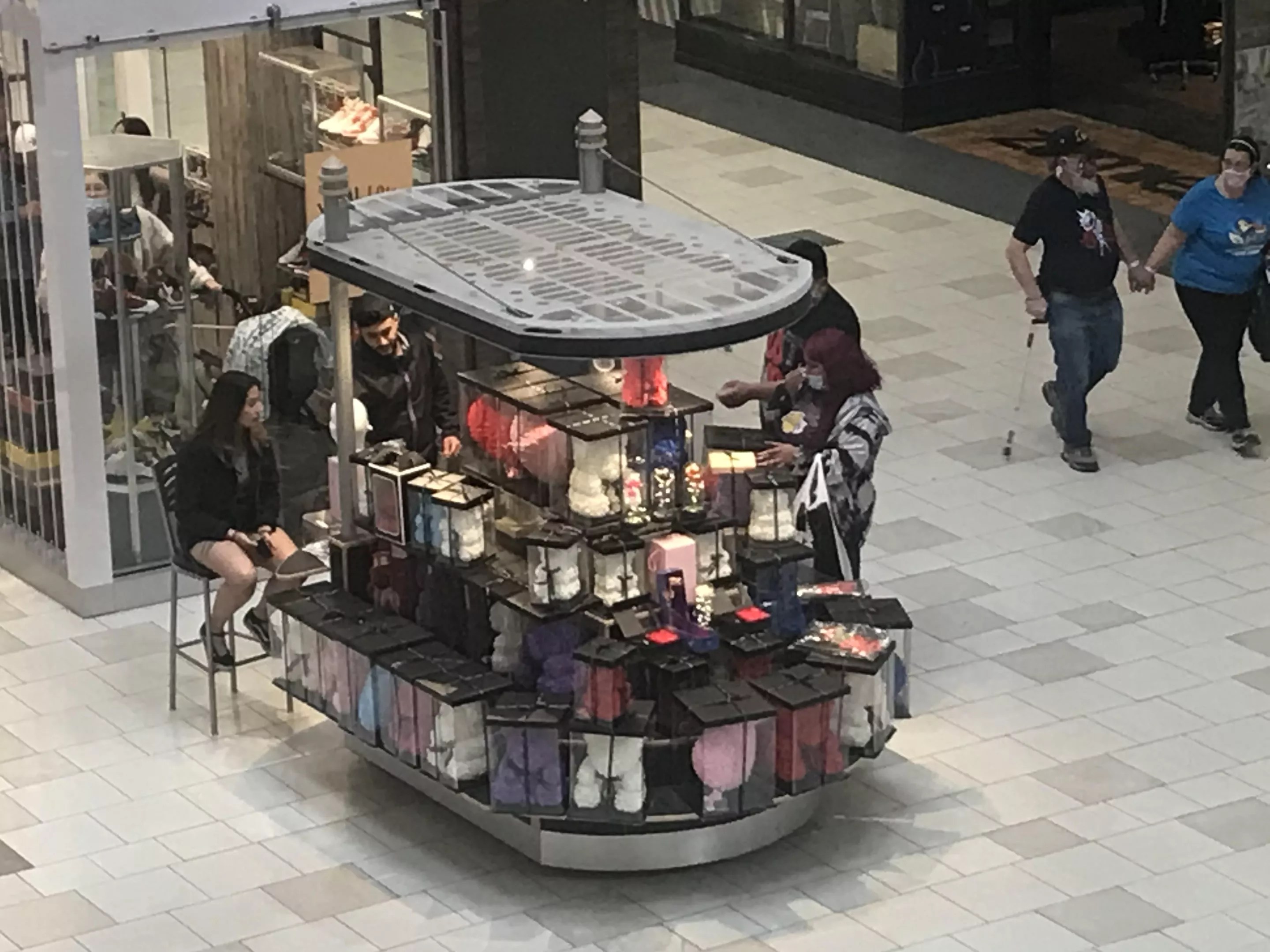 Once again, mask-wearing was more prevalent in stores than in the common areas, where very few kiosk employees bothered to cover up.