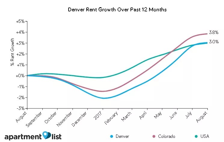 The numbers certainly offer their share of surprises. Note, for instance, that Denver’s rent increase since September 2016, estimated at 3 percent, is actually lower than the 3.8 percent registered by Colorado as a whole.