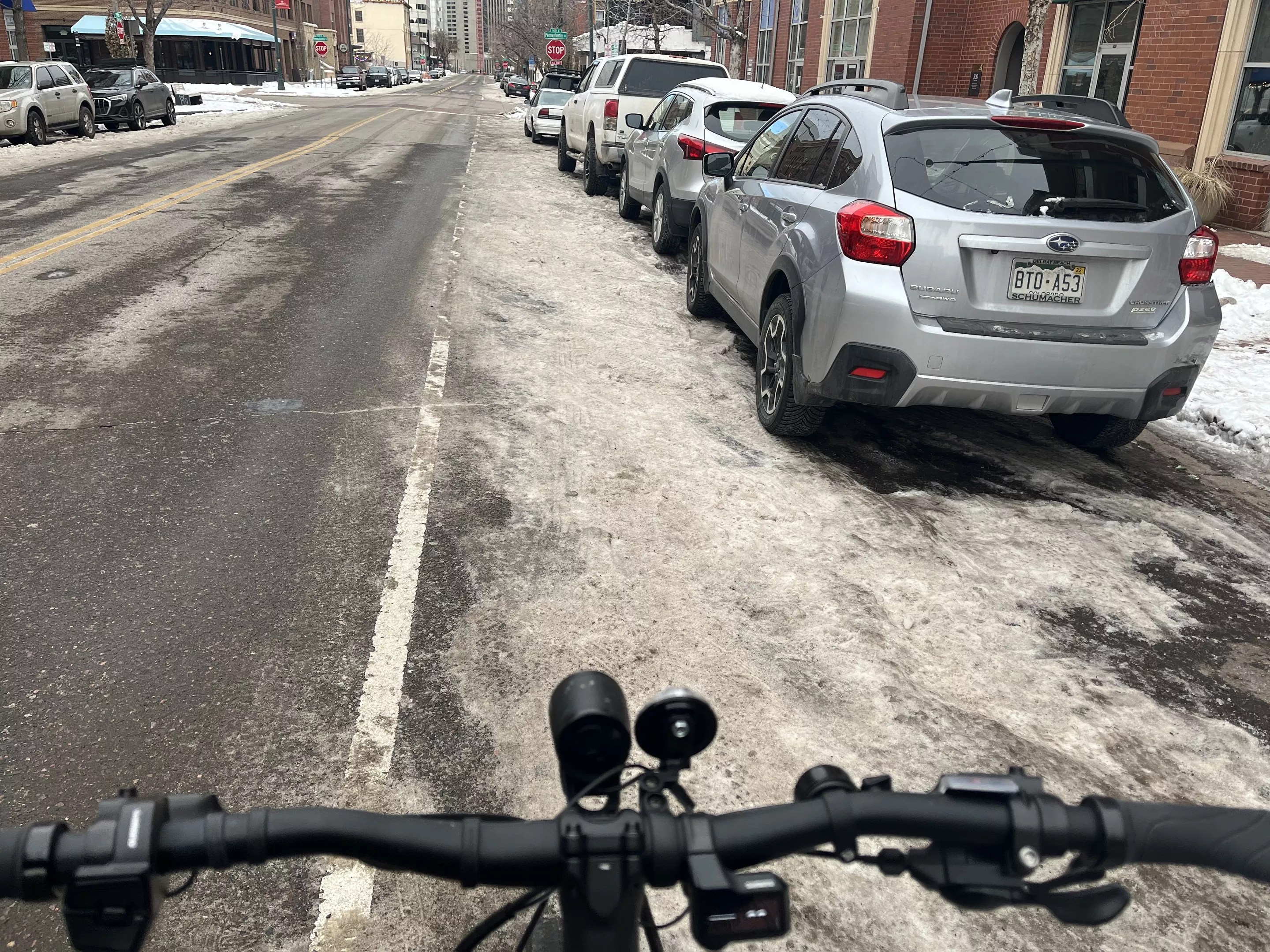 After recent snowstorms in Denver, getting around town has become treacherous. Some sidewalks went unplowed by property owners, leading the snow to eventually turn into ice. Certain side streets still have significant amounts of ice and snow on them. And bike lanes along streets are just a hazardous mess.
