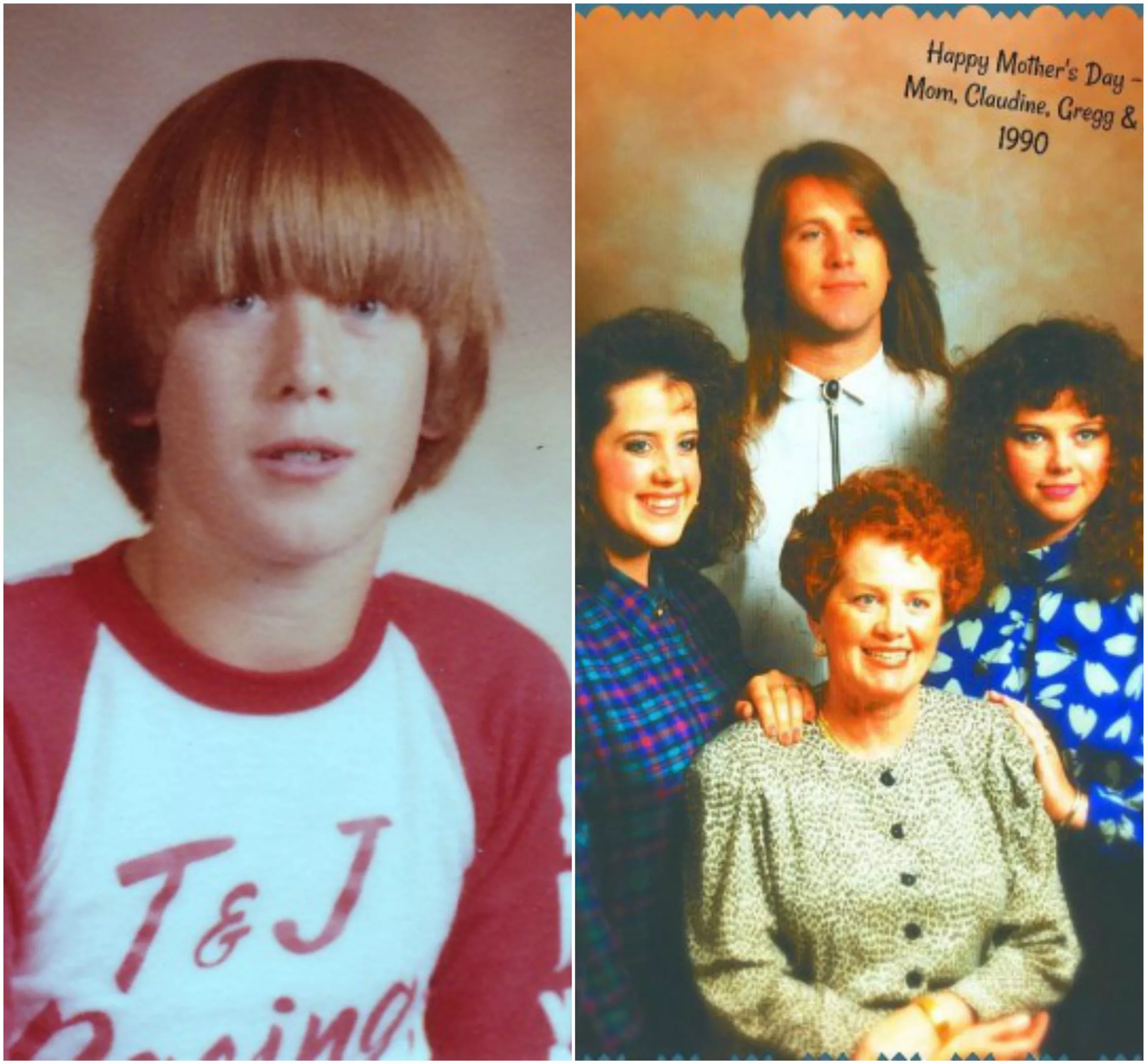 Gregg Stone during his bangin’ teen years and in a family Christmas card from 1990, the year he joined KBPI.