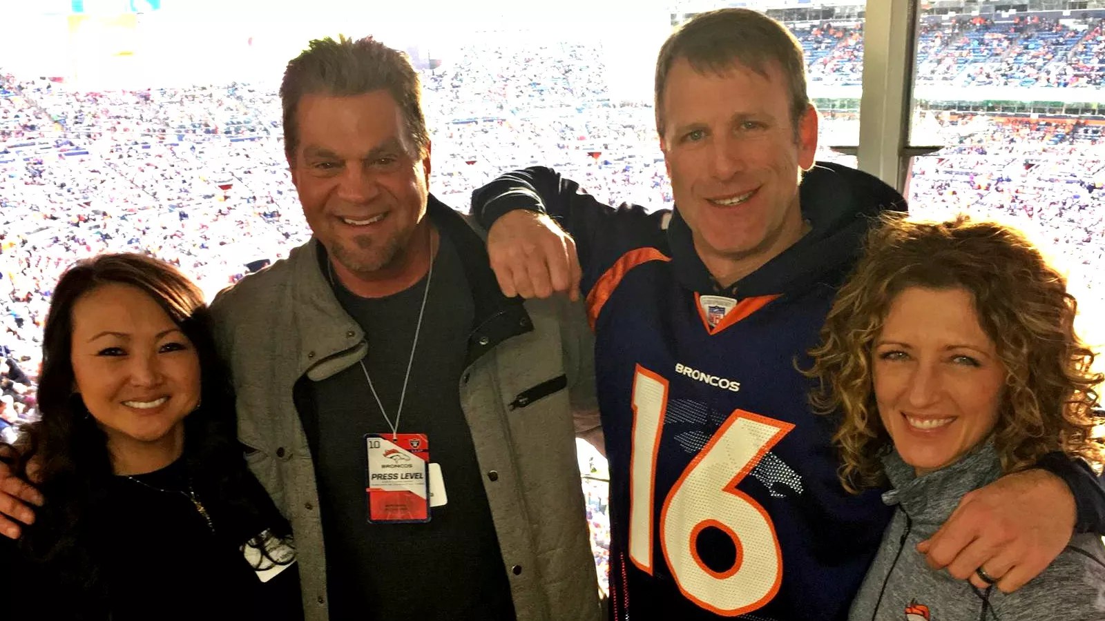 103.5 The Fox personalities Kathy Lee, Rick Lewis, Gregg Stone and Susie Wargin (from left) at a recent Broncos game.