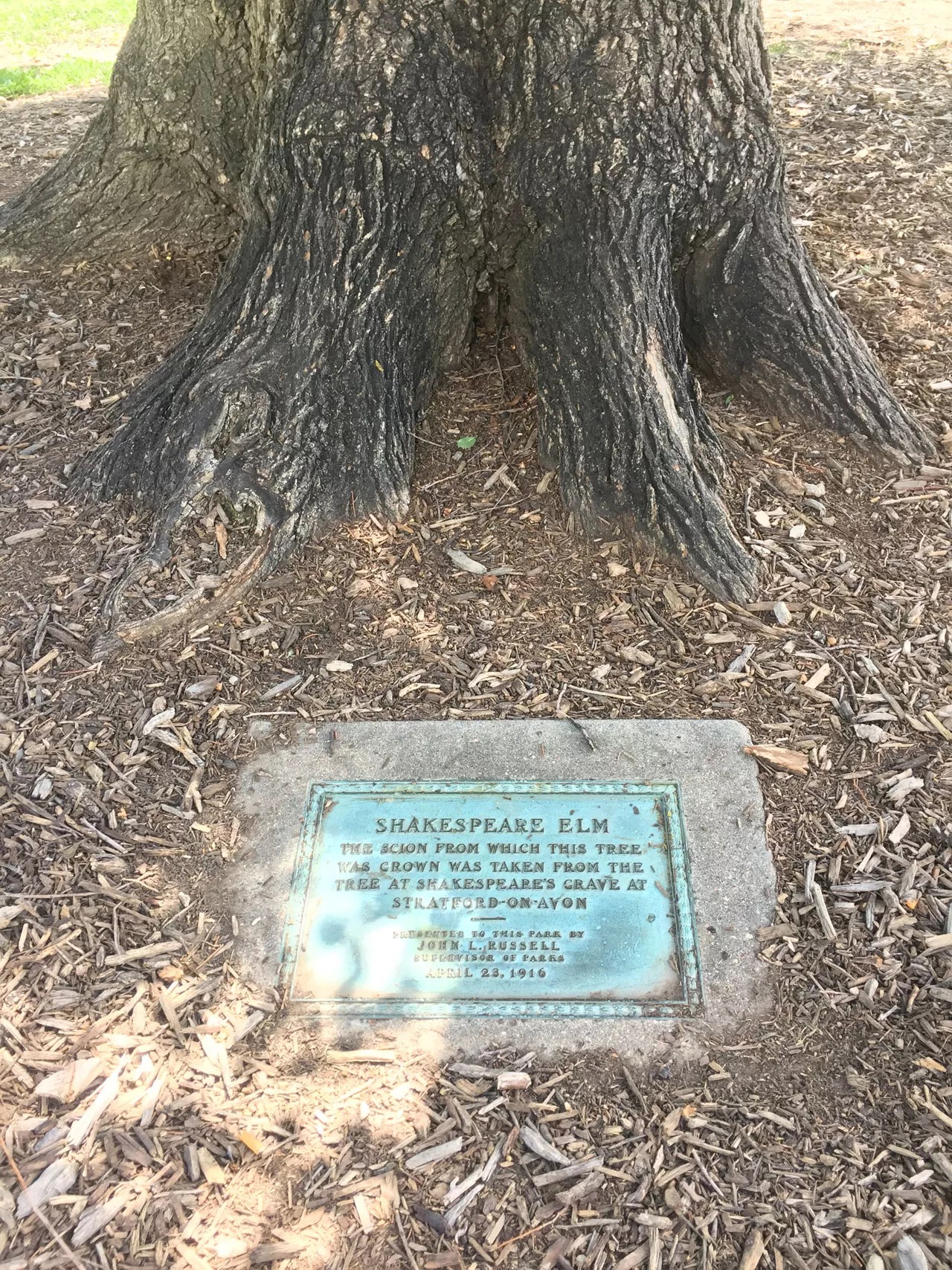 That’s because on April 23, 1916, exactly 300 years from the day of the playwright’s death, a cutting of the Wych Elm from Shakespeare’s gravesite at the Holy Trinity Church in Stratford-upon-Avon was planted in the southeast corner of City Park by John Russell, then Denver’s supervisor of parks. Over the last century, the tree has managed to survive both heedless teenagers and the bouts of Dutch elm disease that have felled many of its contemporaries, and it now stands as an unlikely legacy of the world’s greatest poet.