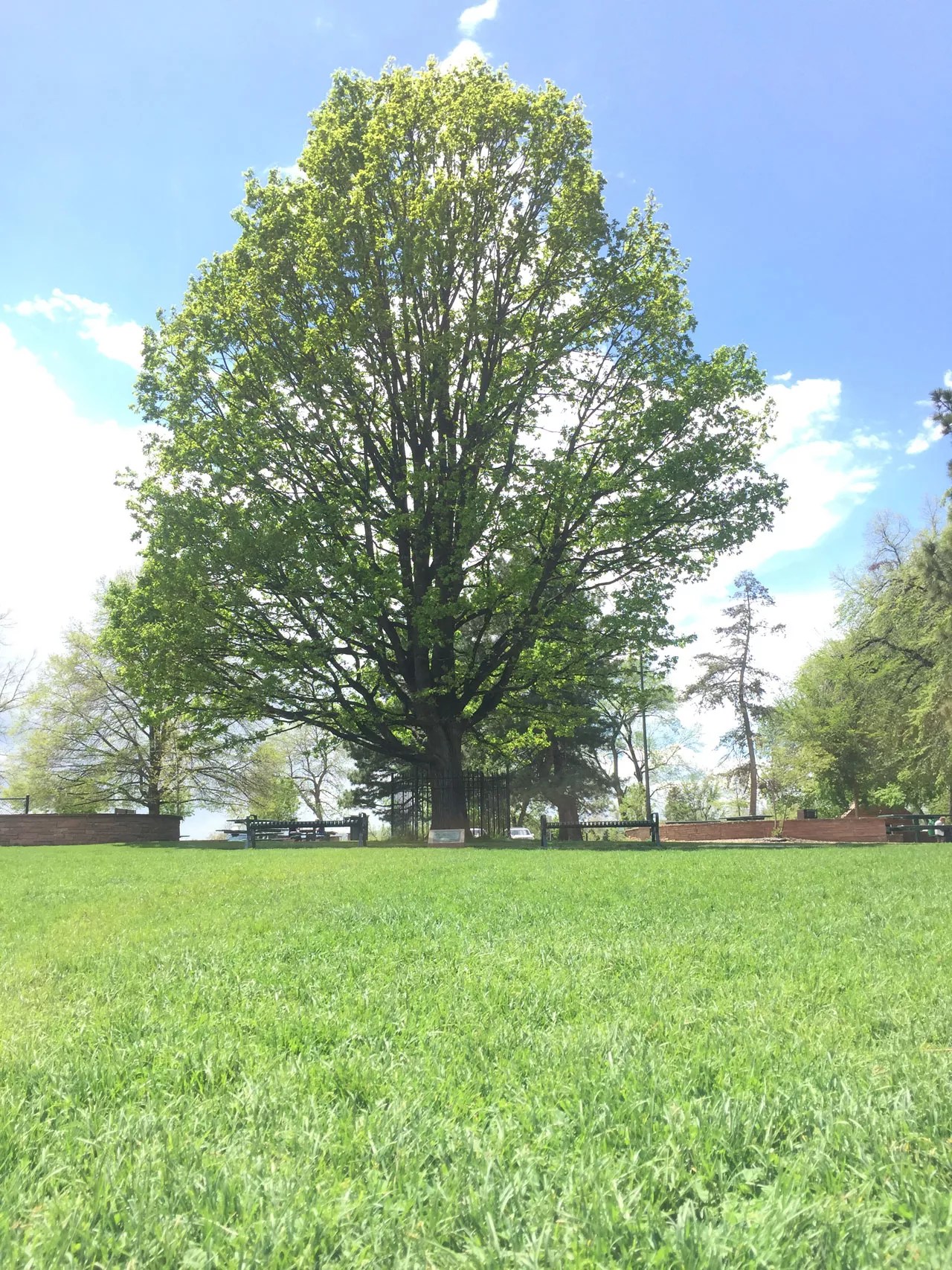 Understandably, they avoided another elm, instead selecting a hearty specimen that to this day stands sentinel in the south end of the meadow over the sunny, free citizens below.