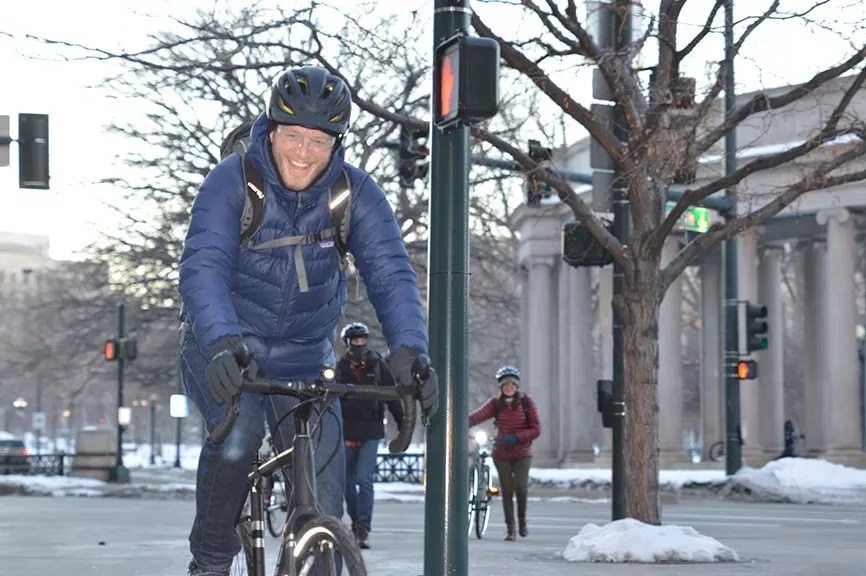 “Honestly, the bike that people have already, it’s going to work 95 percent of the time,” said David Pulsipher, bicycle planning supervisor for the Denver Department of Transportation and Infrastructure (DOTI), who was on hand to greet riders. “Especially if you have fenders and lights. Sometimes having a set of winter tires and stuff like that helps, but you don’t really need special equipment.”